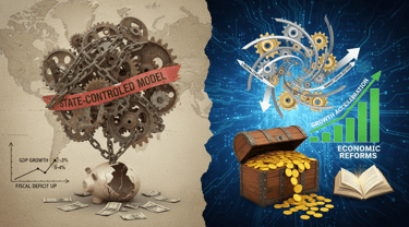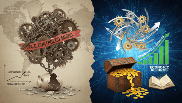 A report detailing the economic journeys of India and South Korea, highlighting the distinct challenges they faced, the strategies they employed for modernization, and the pathways for future collaboration.