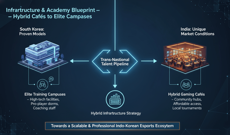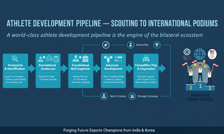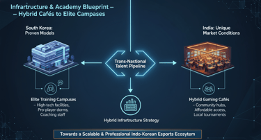 This blueprint outlines a comprehensive, self-sustaining esports talent development ecosystem that merges South Korea's institutional excellence, world-class infrastructure, elite coaching methodologies, and proven monetization models with India's explosive market growth (projected from $40M in 2022 to $140M by 2027), massive youth demographic, and emerging government support.