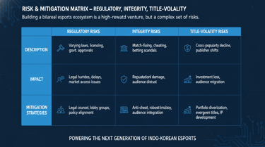 Building a bilateral esports ecosystem is a high-reward venture, but it comes with a complex set of risks.