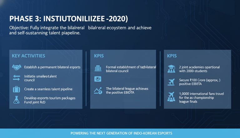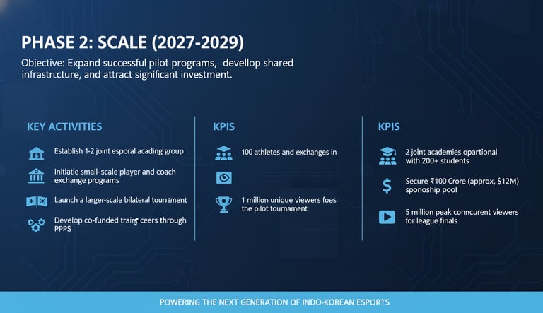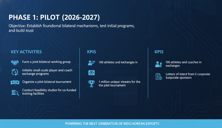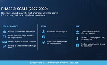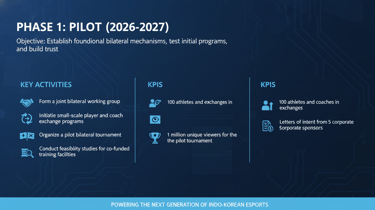 Key Activities: Establish 1-2 joint esports academies; launch a larger-scale bilateral league; develop co-funded training centers through PPPs.