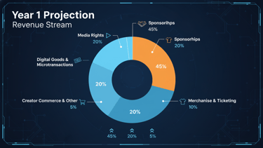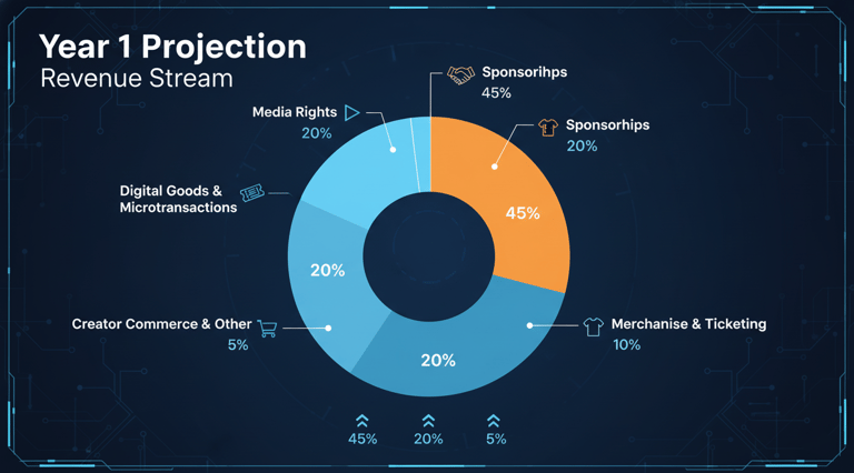 KPIs: 2 joint academies operational with 200+ students; secure a ₹100 Crore (approx. $12M) sponsorship pool; 5 million peak concurrent viewers for league finals.
