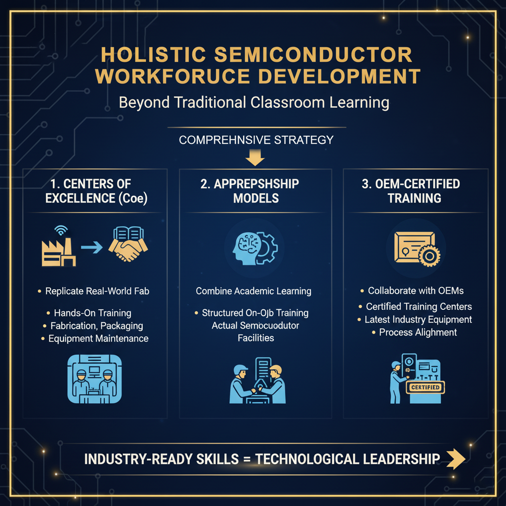 Apprenticeship Models: Implementing robust apprenticeship programs that combine academic learning with structured on-the-job training in actual semiconductor facilities.