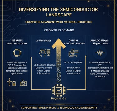 Global Position / Key Strength = Growing capabilities in WBG materials, led by SK Group. Indian Gap = Nascent R&D and fabrication efforts.