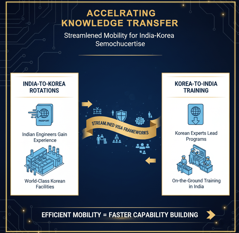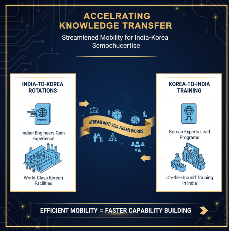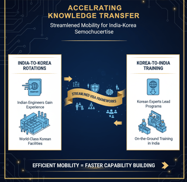 To accelerate knowledge transfer, streamlined visa frameworks should be advocated for. This would facilitate Korea-India rotations, allowing Indian engineers to gain invaluable experience in world-class Korean facilities while enabling Korean experts to lead training programs on the ground in India.