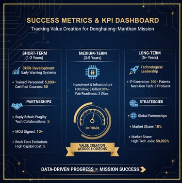 To ensure the Donghaeng-Manthan mission remains on track, progress must be measured against a clear set of Key Performance Indicators (KPIs) that track value creation across different time horizons.
