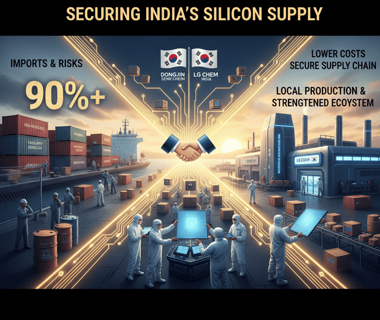 India currently imports over 90% of its high-purity chemicals, specialty gases, and other critical materials for semiconductor manufacturing. This dependence creates supply chain vulnerabilities and inflates costs. Fast-tracking joint ventures with Korean materials leaders like Dongjin Semichem or LG Chem to establish local production facilities is a foundational step to de-risk the entire Indian semiconductor ecosystem..