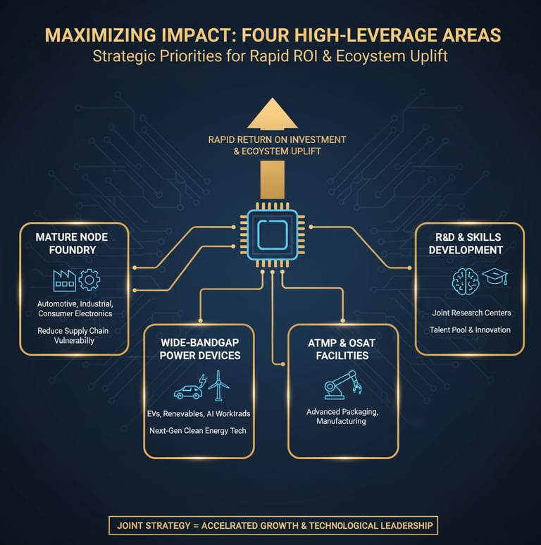 While full-scale fabs take years to build, India can capture high-value opportunities in the mid-stream of the supply chain through advanced packaging (OSAT). Demand is soaring globally, driven by AI and high-performance computing. South Korea is a leader in advanced packaging technologies like High-Bandwidth Memory (HBM) and 2.5D/3D integration. A near-term joint venture to establish a pilot OSAT line in India represents the fastest path to revenue and ecosystem development.