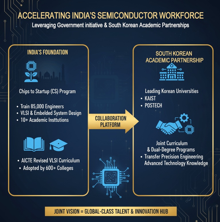 The Indian government has already laid the groundwork with key initiatives. The 'Chips to Startup' (C2S) Program aims to train 85,000 engineers in VLSI and Embedded System Design across 120 academic institutions. This provides a perfect platform for collaboration. By partnering with leading Korean universities like KAIST and POSTECH, joint curricula and dual-degree programs can be developed to transfer precision engineering knowledge directly. This effort is complemented by the AICTE's revised VLSI curriculum, already adopted by over 600 colleges.