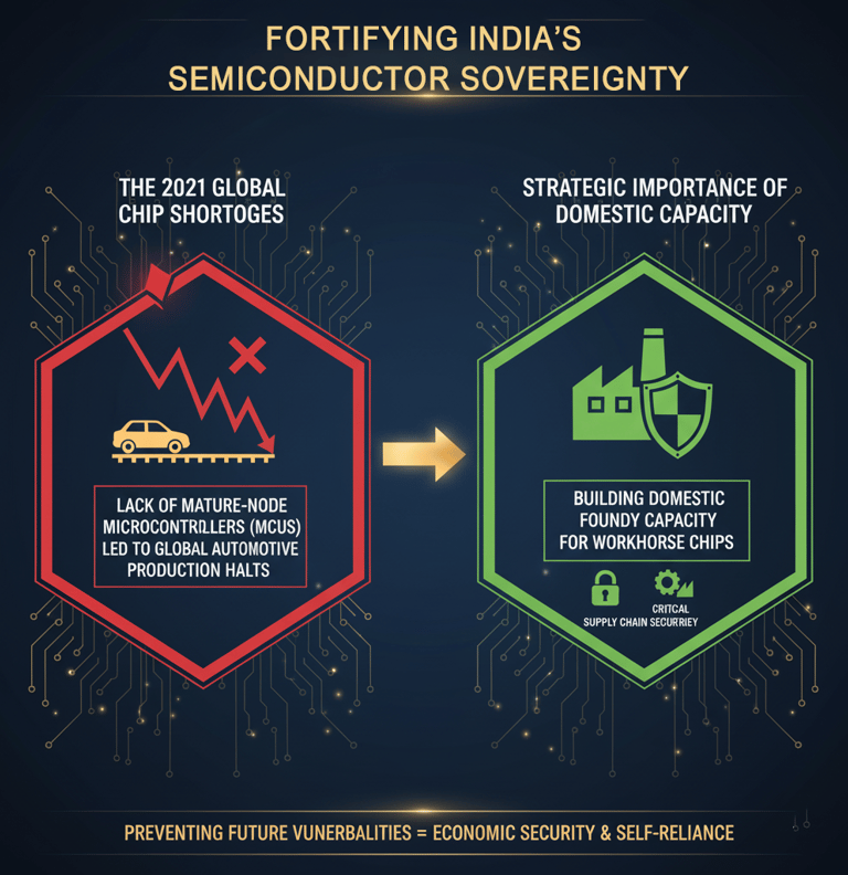 The strategic importance of domestic capacity was starkly illustrated during the global chip shortages of 2021, which severely impacted the automotive industry. A lack of mature-node microcontrollers (MCUs) forced production halts for major car manufacturers worldwide. Building domestic foundry capacity for these workhorse chips is not just an economic opportunity but a crucial step to prevent such vulnerabilities in the future and ensure supply chain security for India's critical industries.
